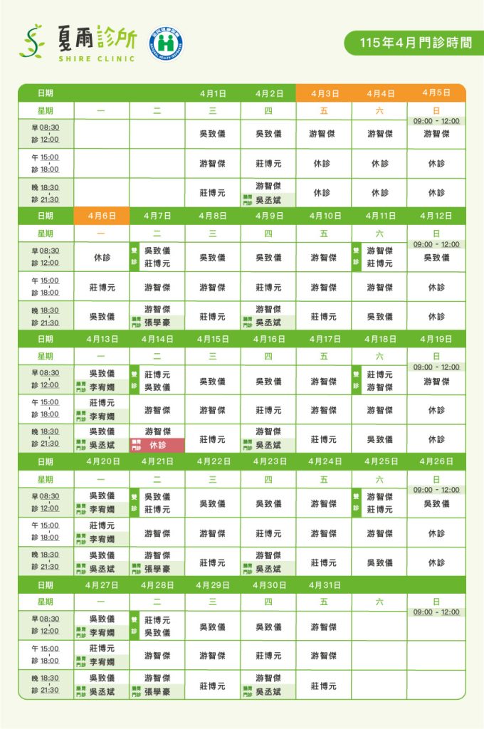 🌱四月門診時間